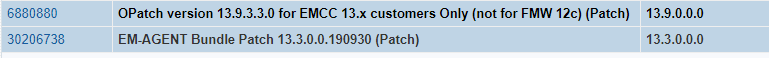 In this exercise, OEM 13c is running in offline mode, and two patches have been downloaded and uploaded onto Software Library. One patch is a bundle patch, and another one is the latest OPatch utility.