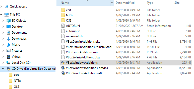 Double-click on this CD drive to launch the Oracle VM VirtualBox guest additional setup.
