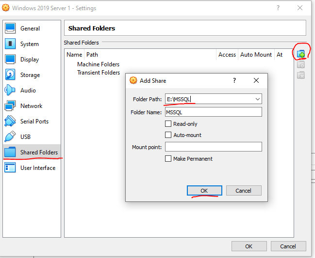 In SQL Server Management Studio, you will only see the local drives available to SQL Server database engine. In this article we will take a look at the approach on how to configure SQL Server to access shared folder to perform database backup or restore commands, even further the SQL Server datafiles and logfiles can be stored on to shared folders in Oracle VirtualBox.