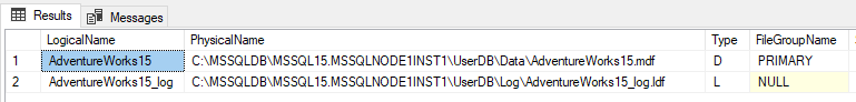 RESTORE FILELISTONLY FROM DISK = 'Z:\AdventureWorks15.bak'