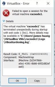 Backup virtual hard disk for racnode1 and racnode2, in case the operation fails