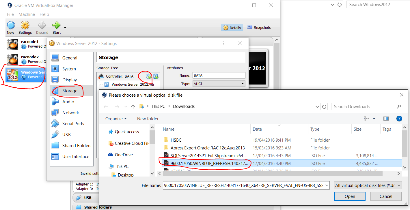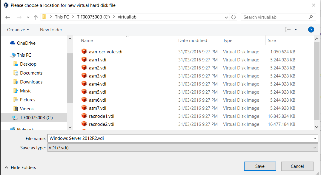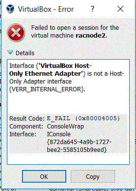 Backup virtual hard disk for racnode1 and racnode2, in case the operation fails